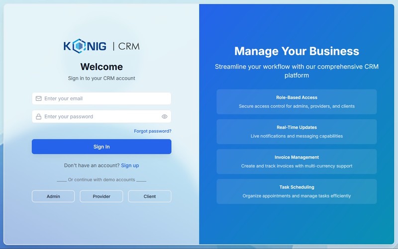 CRM König is more than just a CRM platform; it is an all-encompassing, cost-effective solution for service businesses. Whether managing client interactions, generating invoices, or organizing tasks, CRM König seamlessly integrates these critical functions into one cohesive platform.