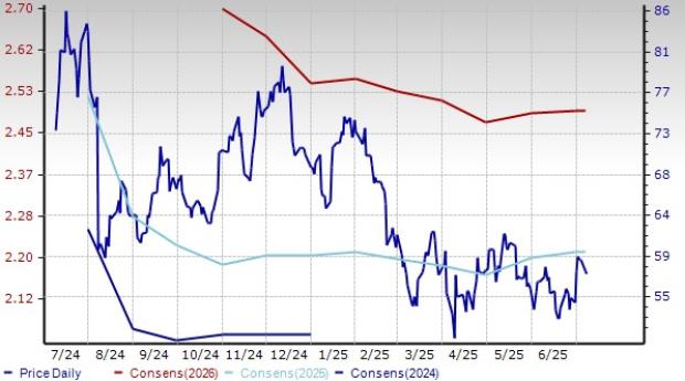 The industry’s positioning in the bottom 50% of the Zacks-ranked industries is a result of a lower earnings outlook for the constituent companies in aggregate. Looking at the aggregate earnings estimate revisions, it appears that analysts are gradually losing confidence in this group’s earnings growth potential. Since April 2025, the industry’s earnings estimates for 2025 have decreased to $2.11 per share from $2.22.