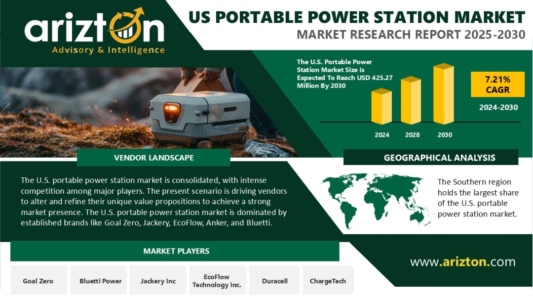 To view the original version on ABNewswire visit: U.S. Portable Power Station Market to Reach $425 Million by 2030, Powered by Smart Tech, AI-Driven Battery Systems & Disaster Preparedness - Arizton