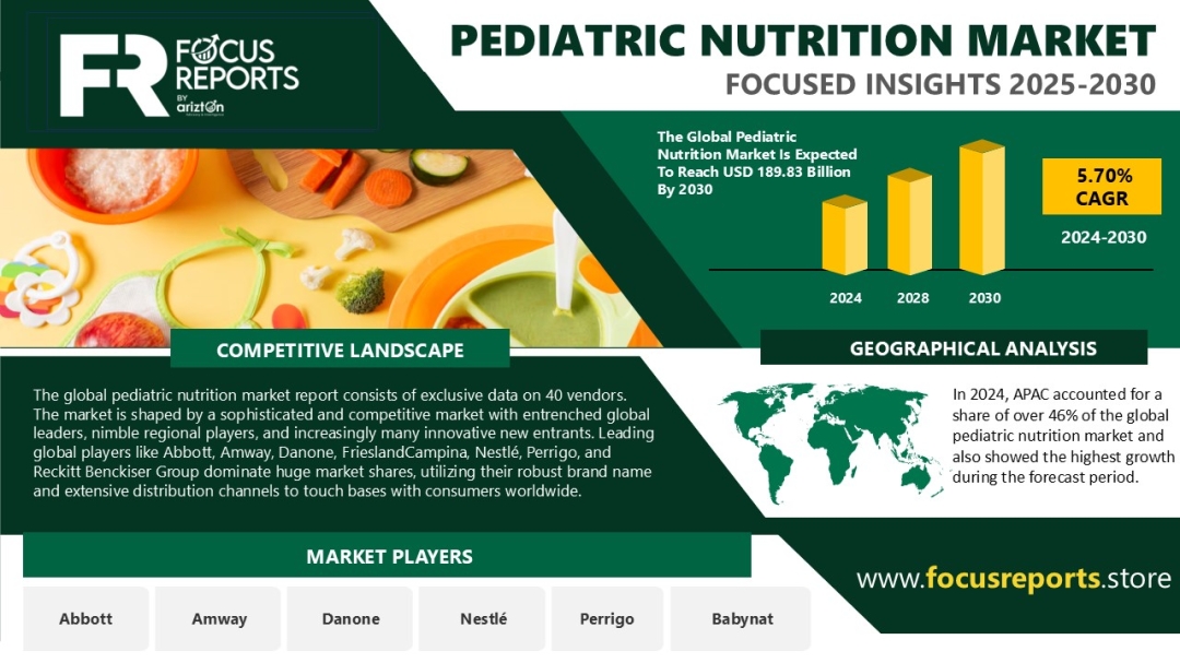 To view the original version on ABNewswire visit: Pediatric Nutrition Market to Reach $189.83 Billion by 2030: Asia-Pacific Leads, Innovation and Clean-Label Demand Drive Growth- Focus Report Store