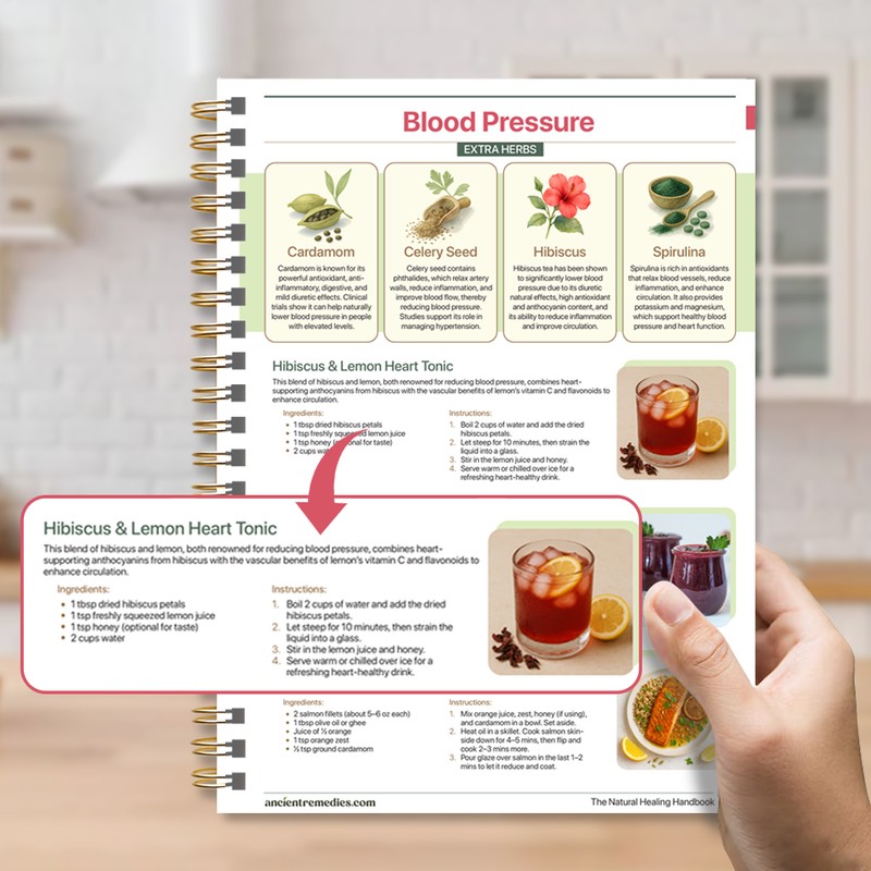 The new guides are built for real-life accessibility. Recipes are condition-specific, so you can go straight to the section on sleep, joint comfort, or blood-sugar balance without flipping through pages of theory. Every remedy relies on easy-to-find kitchen ingredients—think garlic, ginger, honey, or turmeric—and comes together with quick, step-by-step instructions anyone can follow. For added convenience, The Natural Healing Handbook’s spiral binding lies flat on the counter, and the laminated recipe cards wipe clean after the inevitable splash.