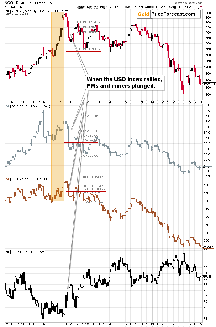 And you know what else happened when gold moved to its 61.8% retracement for the third time in 2012? Silver moved higher but it was clear that it was weaker than gold on a relative basis – it didn’t reach its previous highs.