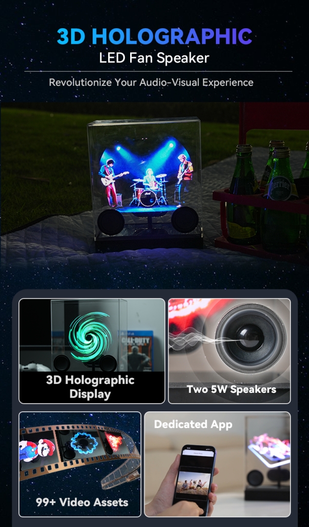 Powered by 149 high-brightness LEDs (2100cd/㎡), this speaker projects vivid, lifelike 3D visuals that float in mid-air. Think dynamic geometric patterns, playful cartoons, or even your memories—all popping off without a screen.