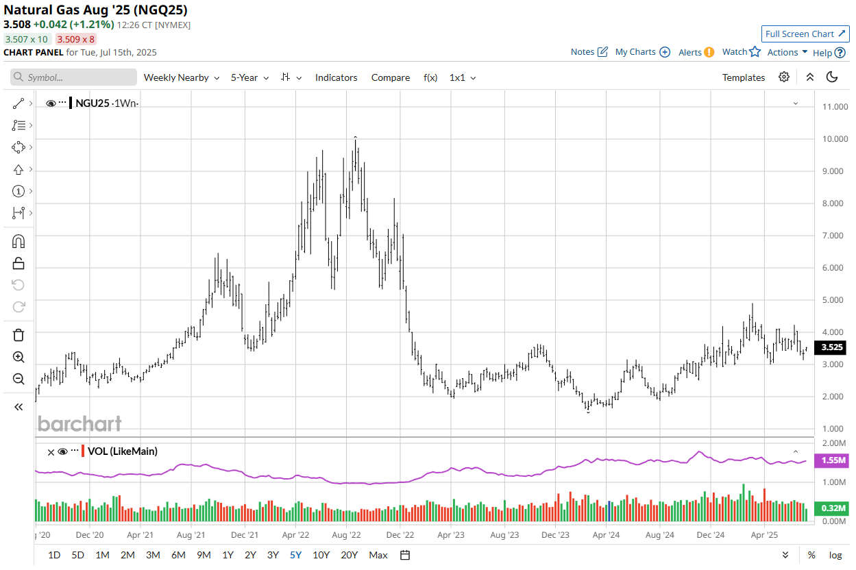 August'25 Natural Gas 5-Year Chart Below.