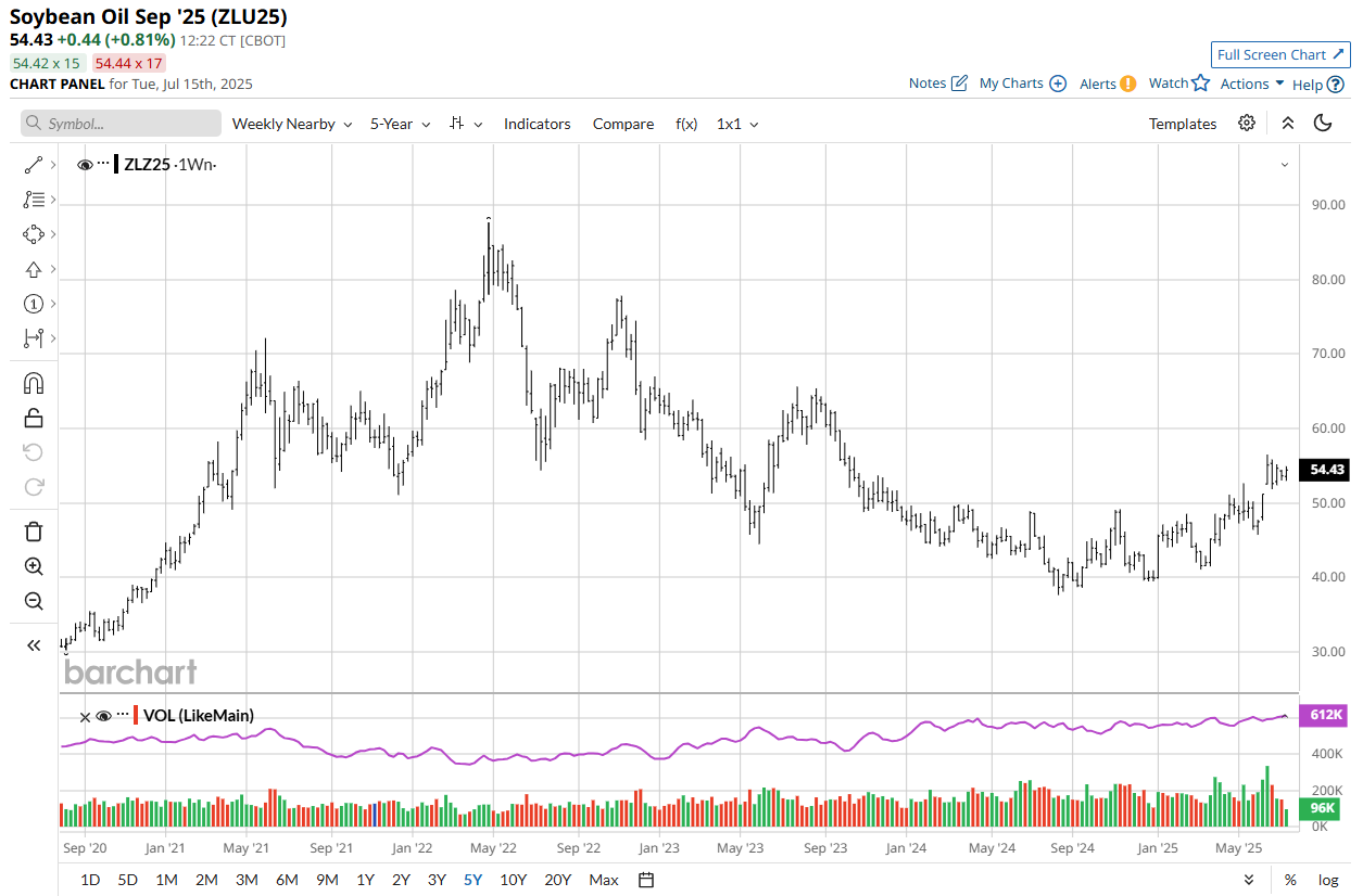 September'25 Soybean Oil 5-Year Chart Below.