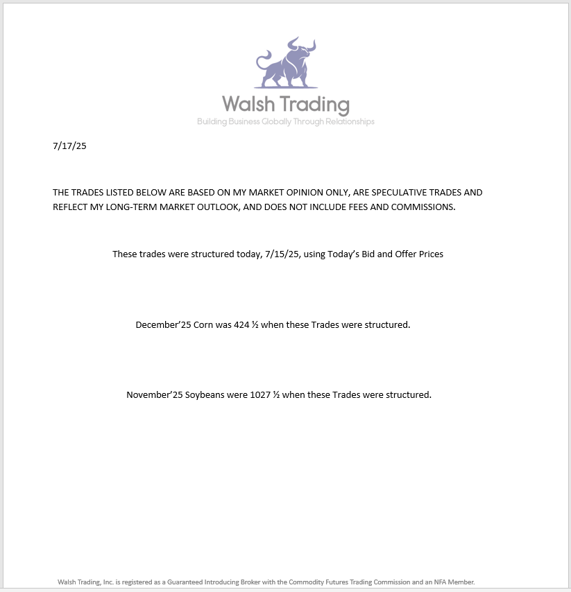DECEMBER'25 CORN AND NOVEMBER'25 SOYBEAN TRADES BELOW