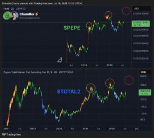 Pepe price prediction is quietly setting up for a major breakout, and the momentum is real. The meme token has climbed over 35% this past month, shrugging off market swings while most altcoins stalled. Analysts now believe a new all-time high could be within reach, especially with Ethereum aiming for $5,000.