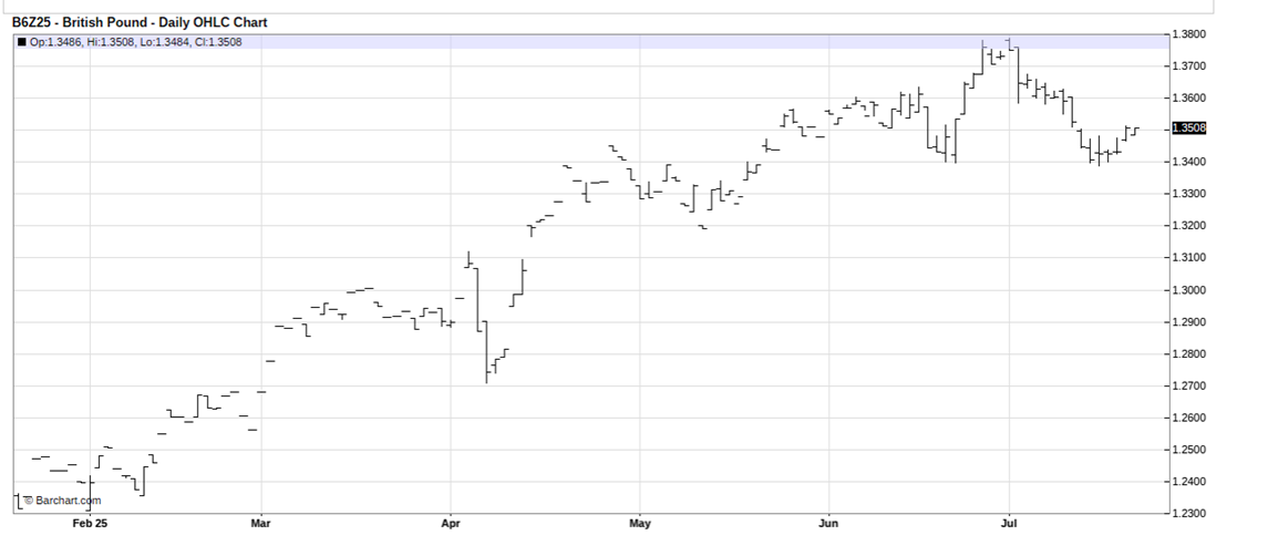 December British pound futures (B6Z25) present a selling opportunity on more price weakness.