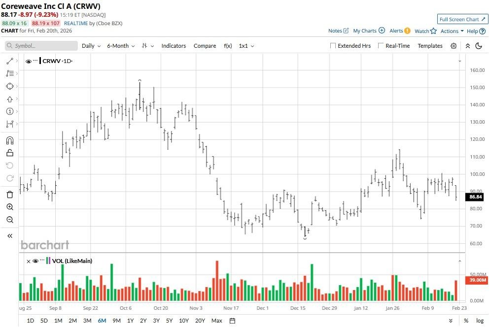 Versus its year-to-date high, CoreWeave stock is now down more than 20%.