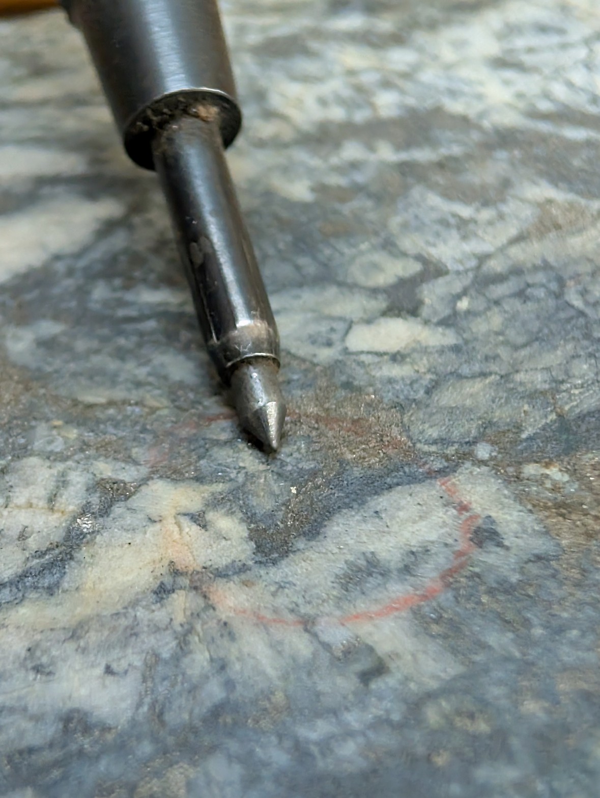 Figure 1. Channel sampling through a zone of intense quartz shear veining at the Vermillion Zone.