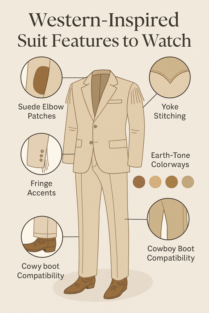 This year’s breakout trend? Western Suits with vintage flair. From cowboy yoke stitching to earthy-toned suedes, these styles fuse ranchwear nostalgia with metropolitan polish.