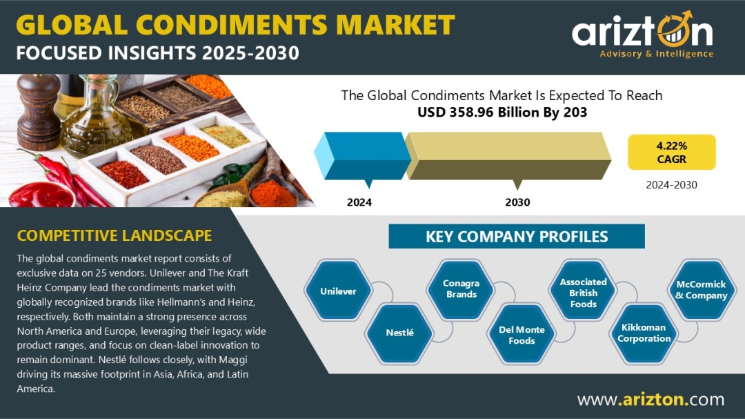 According to Focus Reports Store, the Global Condiments Market is projected to grow at a CAGR of 4.22% from 2024 to 2030, reaching USD 358.96 billion by 2030.