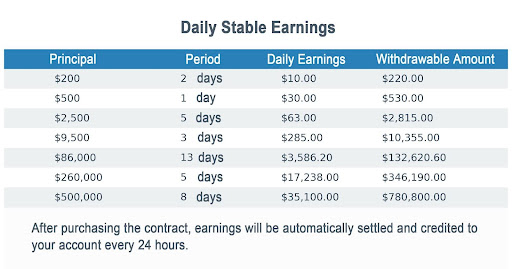 - Choose from multiple mining contracts—varying by investment amount and duration—to match your financial goals;