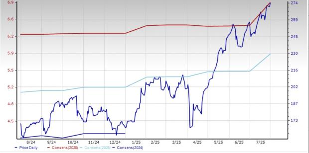Rising U.S. defense spending is set to benefit aerospace-defense firms focused on military aerospace, although persistent supply-chain issues may still pose challenges. Meanwhile, strong global air passenger growth — up 5% year over year and projected to rise 5.8% in 2025 — offers a solid boost to commercial aerospace players. Airlines’ demand for new jets and fleet upgrades amid record-high aircraft backlogs signals positive momentum for industry players despite elevated costs and procurement delays. The frontrunners in the aerospace-defense industry that you may add to your portfolio are GE Aerospace GE, Airbus Group EADSY and Huntington Ingalls Industries HII.