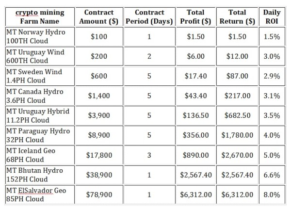 The long-term viability of a cloud mining platform often hinges on whether its contract structure is well-designed, inclusive of diverse investor profiles, and offers differentiated returns. MiningToken excels in this area by offering a wide range of tiered contracts -- from entry-level to professional -- with investment thresholds ranging from $100 to $78,900. These plans are crafted to suit casual users, growing investors, and high-net-worth individuals alike.