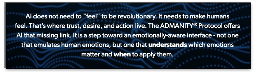 The white paper calls for positioning The ADMANITY® Protocol as a proprietary emotional intelligence layer for AI, with real-world validation and immediate application potential.