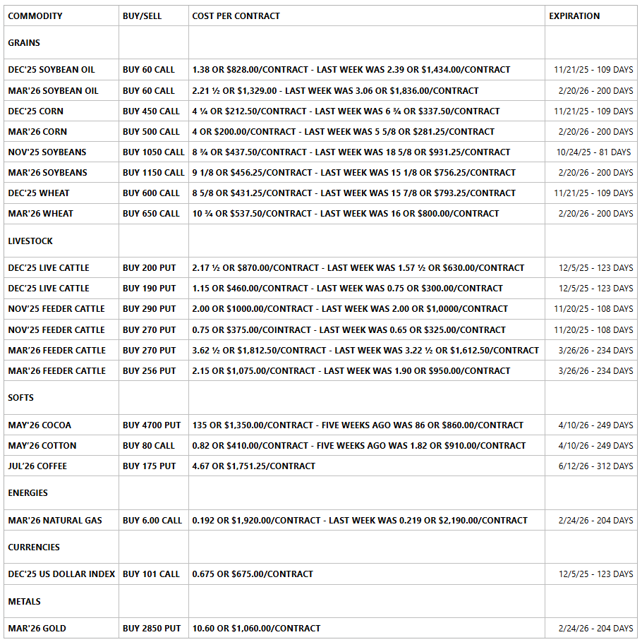 PLUS, FEES AND COMMISSIONS - ALL PRICES ARE FRIDAYS SETTLEMENT PRICES