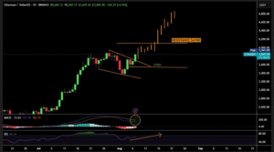 Ethereum’s breakout past $4,180 has set the stage for further gains. CoinEdition notes ETH breached key trendlines, flipping $3,670 and $3,910 from resistance to support with volume-backed momentum.