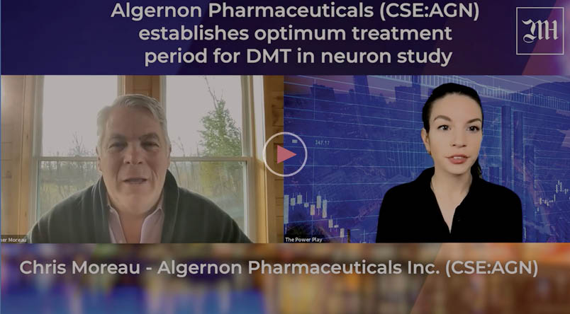 Algernon Pharmaceuticals has established the optimum peak stimulation period for neuron outgrowth by AP-188 (DMT) in its pre-clinical in vitro study. This current data set is from the second part of Algernon's in vitro experiment designed to focus on the duration of infusion needed to achieve maximal cortical neuron outgrowth. Chris Moreau, CEO of Algernon Pharmaceuticals spoke with Caroline Egan to discuss the news.