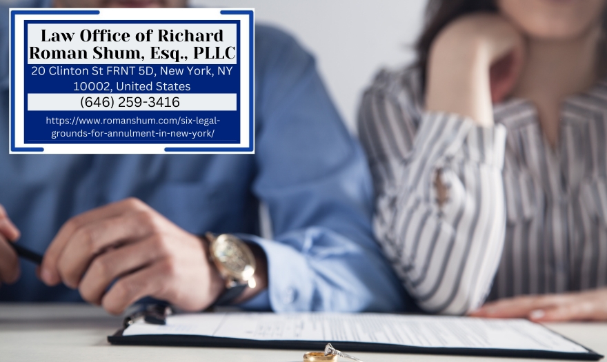 When a marriage in New York faces legal questions about its validity, understanding the specific reasons that qualify for annulment is critical. Manhattan family law attorney Richard Roman Shum (https://www.romanshum.com/six-legal-grounds-for-annulment-in-new-york/) of the Law Office of Richard Roman Shum outlines six legal grounds for annulment recognized by New York courts. Unlike divorce, which ends a valid marriage, annulment establishes that the marriage was never legally valid from the beginning, and each ground requires specific evidence to be proven in court.