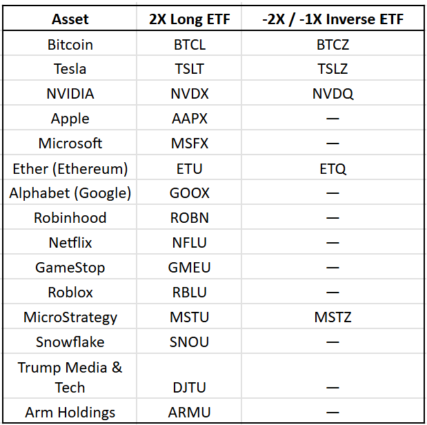 T-REX ETFs focus on high-volatility, high-interest stocks and crypto assets—the same names that drive market momentum and trader attention.Â