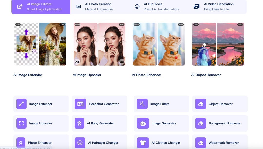 PixNova AI is an all-in-one AI image and video creation platform dedicated to providing creators worldwide with efficient and intelligent visual production tools. The platform integrates cutting-edge AI capabilities, including artistic image generation, AI photo editing, AI image to video, video generation, high-resolution upscaling, background removal, and advanced face swap features. Without the need for complex post-production skills, users can generate high-quality images and videos in just a few simple steps or with short text prompts.