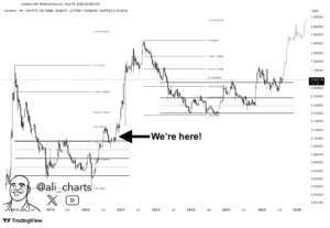 On the technical front, analysts have revealed that Cardano price is mirroring the price structure of its last cycle, but this time around, it is unfolding more slowly. It looks like ADA is at the beginning of an explosive move. However, full confidence may hinge on broader altcoin sentiment, already hinted at by rising Ethereum and meme-season energy.