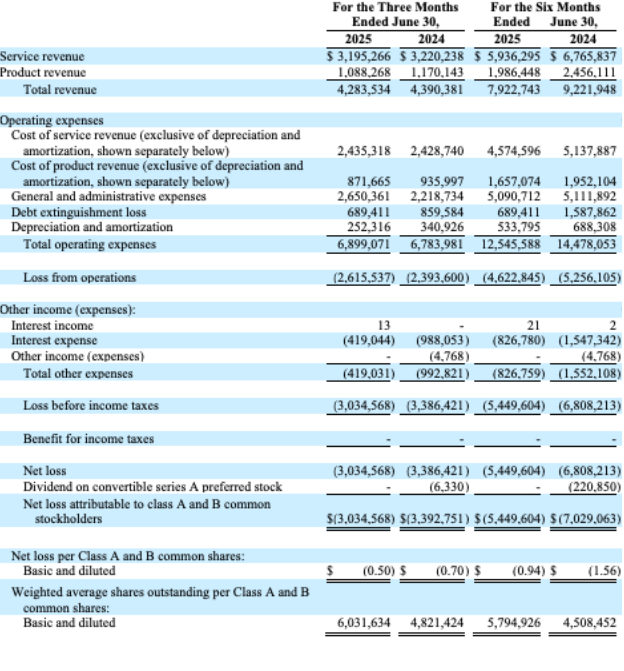 Net loss for the first quarter of 2025 decreased $352,000, or 10%, to $3.0 million. The decline in net loss is primarily attributable to the reduction of interest expense and the exclusion of the operating expenses associated with KVC.