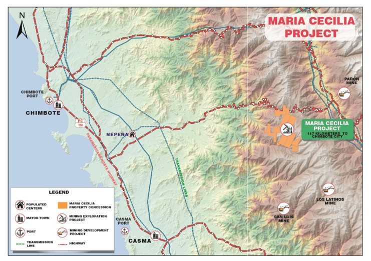 "During this visit to Peru, I had the opportunity to drive from Caraz, over the top of Maria Cecilia, down the western slopes of the Cordillera Negra, all the way to the Pan-American Highway to the west coast of Peru," added Mr. Chmelauskas. "We drove past several powerline corridors and recognized the close proximity of Maria Cecilia to the coastline (60 to 100 km)."