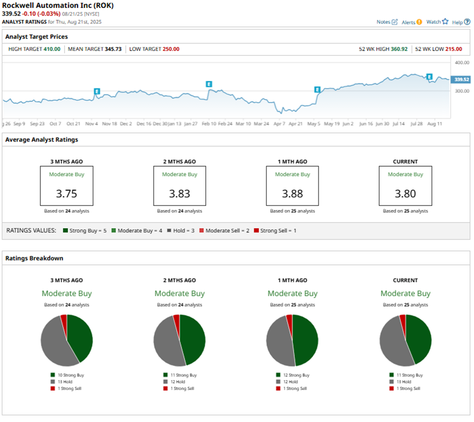 On Aug. 14, Barclays analyst Julian Mitchell raised Rockwell Automation’s price target to $370 while maintaining an “Overweight” rating, citing a favorable risk/reward outlook for the second half of the year.