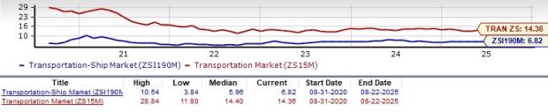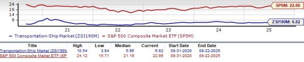 Based on the forward 12-month price-to-earnings (P/E- F12M), a commonly used multiple for valuing shipping stocks, the industry is currently trading at 6.82X compared with the S&P 500’s 22.86X. It is also below the sector’s P/E (F12) reading of 14.36X.