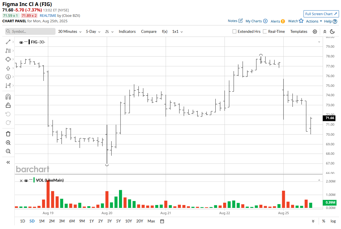 Figma (FIG) has been one of the most closely watched IPOs in 2025. The design software developer for disrupting digital collaboration soared during its first day trading last month, briefly clearing above a $55 billion valuation. Volatility has been the norm since then, as the stock has declined by close to half its peak. Piper Sandler initiated coverage on the stock last week on Wednesday at an “Overweight” rating and at an $85 price target, citing healthy growth patterns and secular tailwinds in digital design.