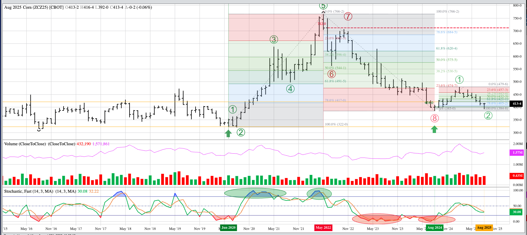 Question #2: Has the December 2025 contract (ZCZ25) bottomed? Yes. We can look at Dec25 from a number of different analytical perspectives: