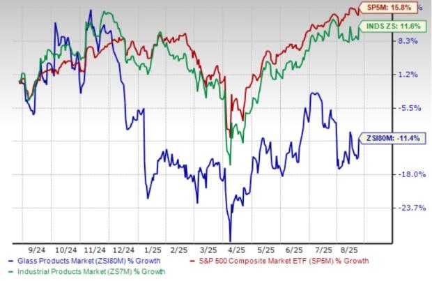 The Glass Products industry has underperformed the S&P 500 and the sector in the past year. The stocks in this industry have collectively declined 11.4% against the Industrial Products sector’s gain of 11.6%. The S&P 500 composite has risen 15.8% during the said time frame.