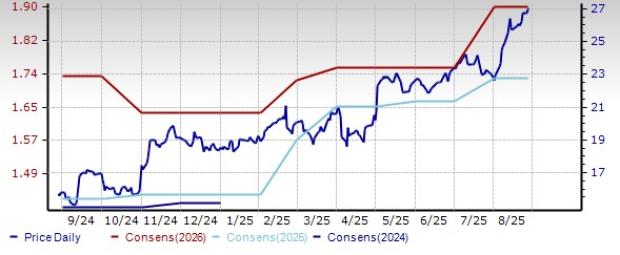 The industry’s positioning in the top 50% of the Zacks-ranked industries is a result of a higher earnings outlook for the constituent companies in aggregate. Looking at the aggregate earnings estimate revisions, it appears that analysts are gradually gaining confidence in this group’s earnings growth potential. Since April 2025, the industry’s earnings estimates for 2025 have increased to $1.34 per share from $1.32.