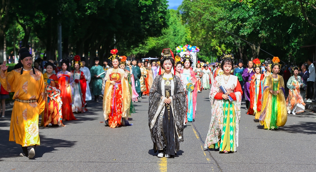 On September 1, the opening ceremony of the 2025 Guangyuan Daughters’ Festival was held in grand style. A spectacular parade of decorated boats recreated the historic scene of Empress Wu Zetian’s river tour, vividly capturing her imperial presence. Tens of thousands of citizens and visitors from across China and abroad recorded and livestreamed the festivities, immersing themselves in the joyous atmosphere.