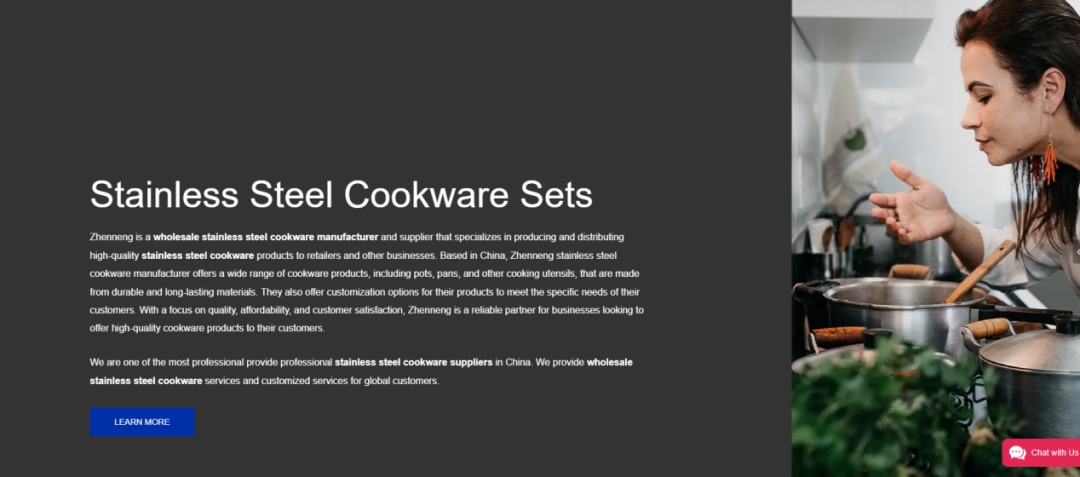 Founded in 2004 and located at Hong Qi Cun, Caitang Town, Chao’an District, Chaozhou City, Guangdong Province, Zhenneng is a full-service stainless steel kitchenware manufacturer specializing in pots, pans, woks and cookware sets for global OEM, ODM and private-label customers.