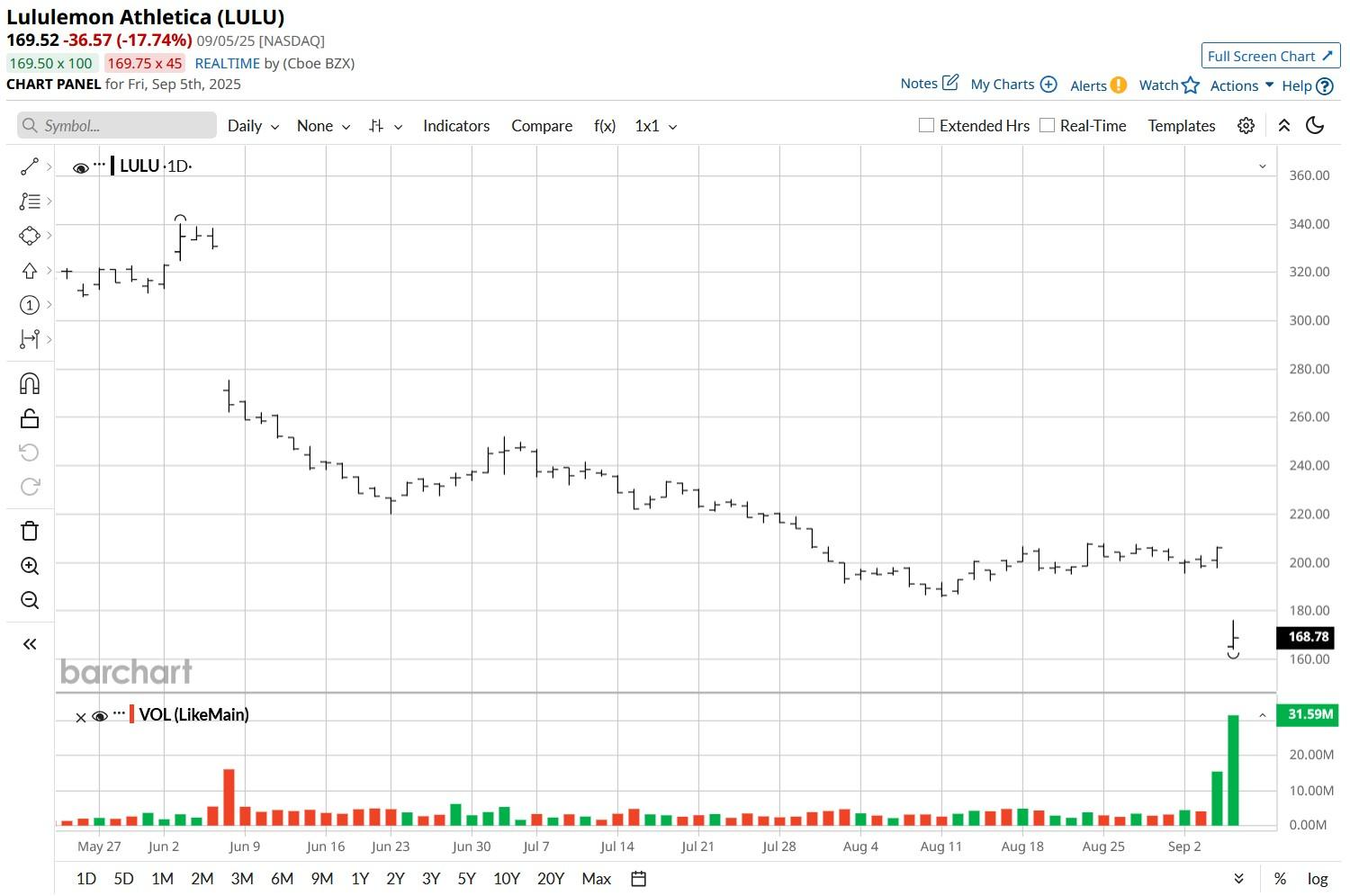 Lululemon (LULU) stock is down nearly 20% on Friday after the athleisure specialist reported a better-than-expected Q2 but issued disappointing guidance for the full year.
