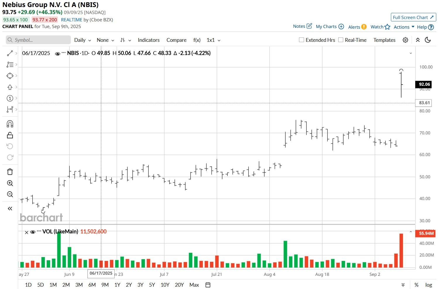 Nebius (NBIS) shares opened nearly 50% up this morning after announcing a $19.4 billion cloud-computing deal with the Redmond-headquartered Microsoft (MSFT).