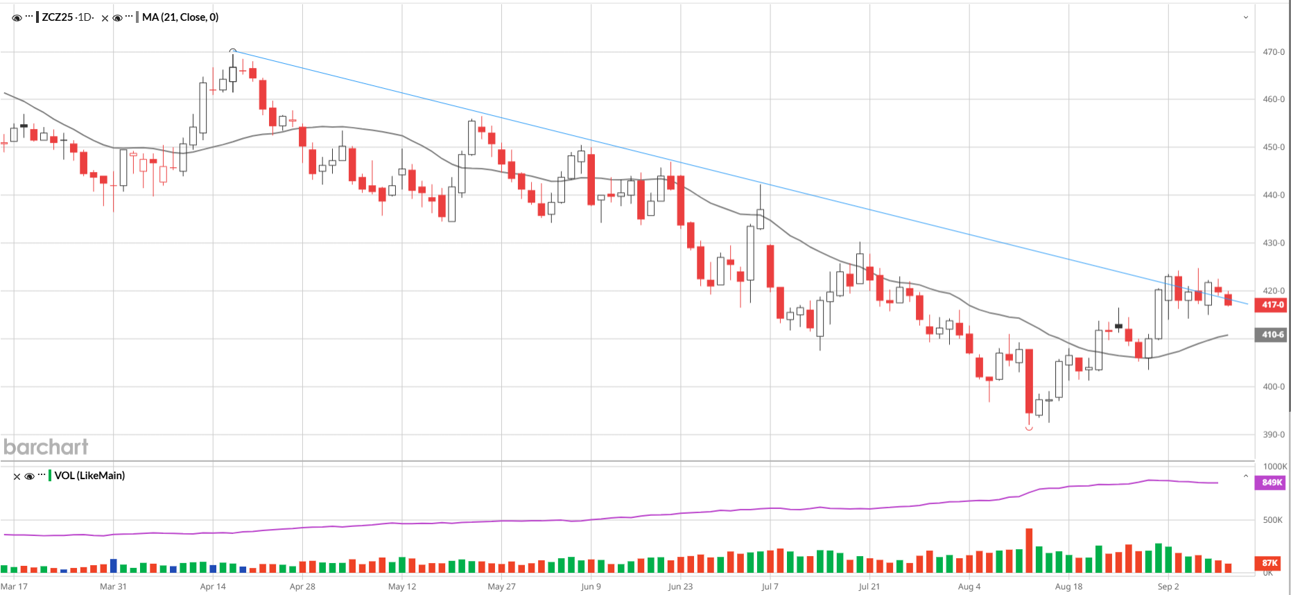 December’25 Corn Options Expire 11/21/25 (72 Days)