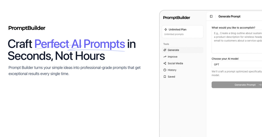 Canada, BC - September 15, 2025 - PromptBuilder carried out the worldwide launch of its platform for prompt engineering in AI, which enables prompt engineering within seconds. A web app that converts a user's plain-language objective into a well-made prompt suited for models like ChatGPT, Claude, and Gemini, thereby aiming to deliver reliable AI outputs on the first try.