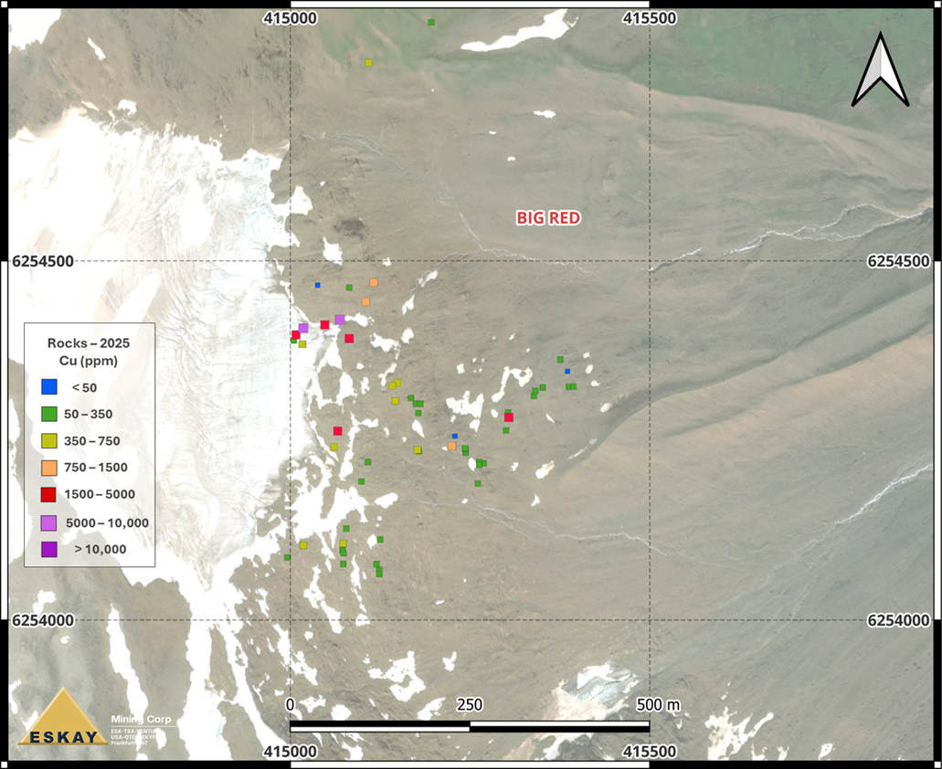 Figure 5. 2025 rock sample assays for copper from the Big Red zone.