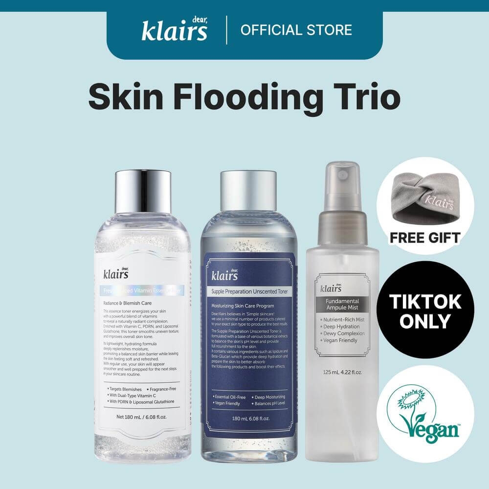For anyone curious about the Skin Flooding trend but unsure which products to combine, discover the Klairs Skin Flooding Trio—carefully curated by our brand with ingredient pairings designed to work in synergy for the best results. The Klairs Skin Flooding Trio is exclusively available on the TikTok Shop from dear Klairs, with shop protections and fast fulfillment. People can explore the official listing on the TikTok Shop for details, verified reviews, and to purchase.