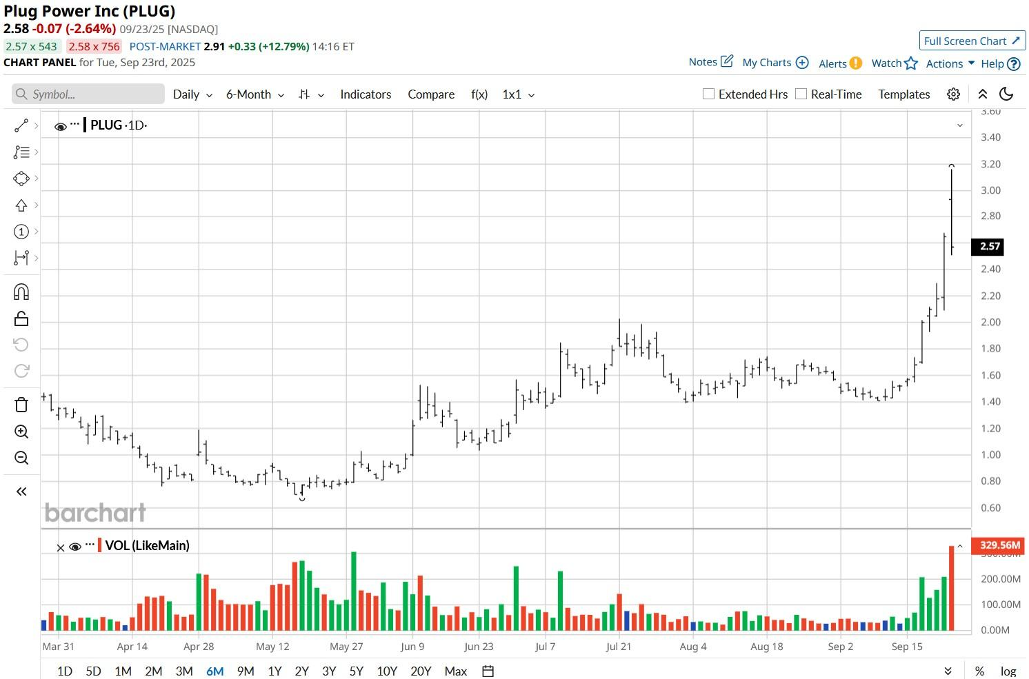 Plug Power (PLUG) shares pushed notably to the upside today after the clean energy firm said its Georgia green hydrogen facility reached record production of 324 metric tons in August 2025.