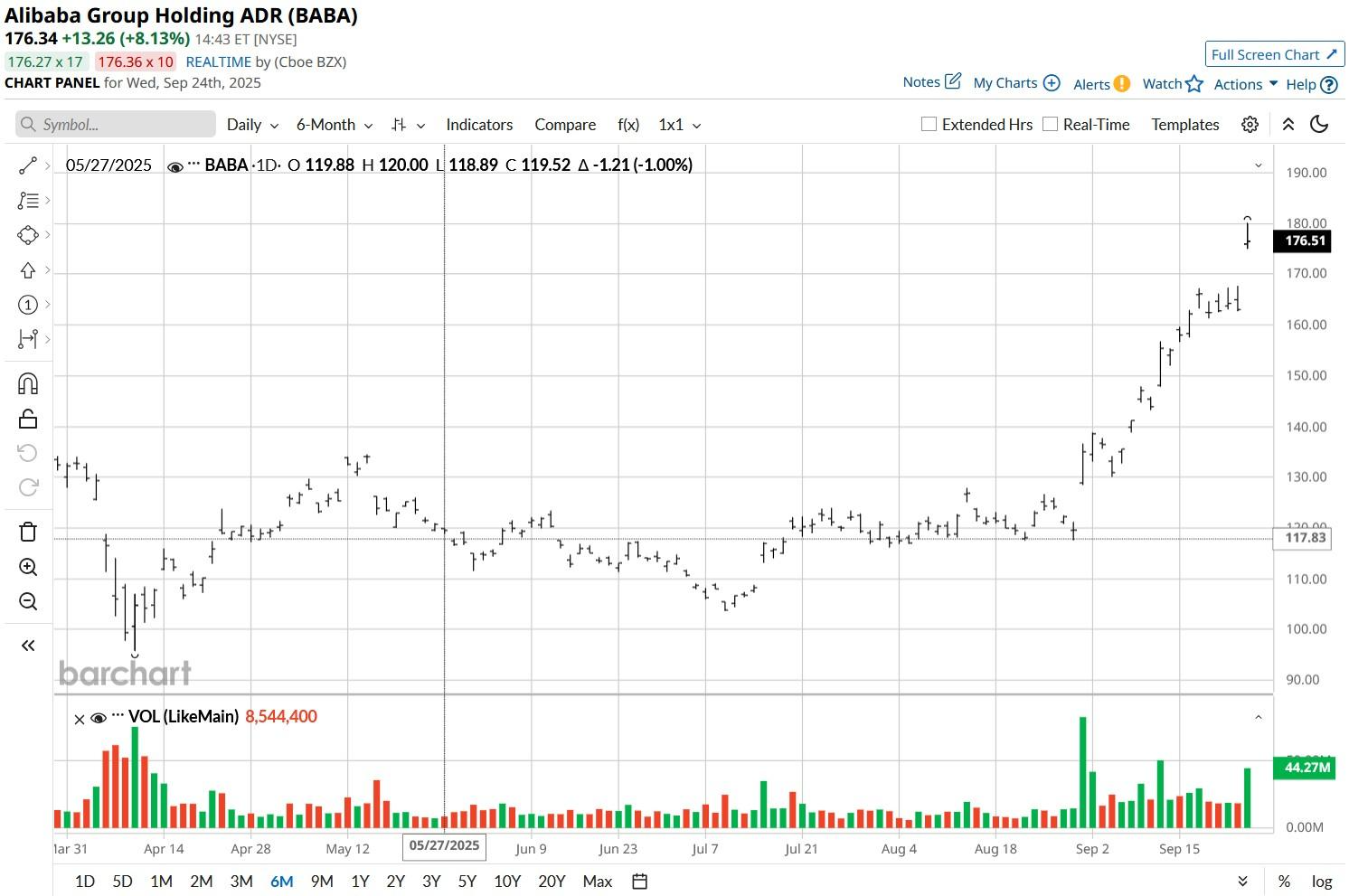 This will enable customers to develop sophisticated applications like autonomous vehicles and humanoid robots. Including today’s rally, Alibaba stock is up roughly 110% year-to-date.