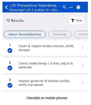 - The use of checklists makes it possible to provide precise work instructions according to the elevator's condition and facilitates early recovery.