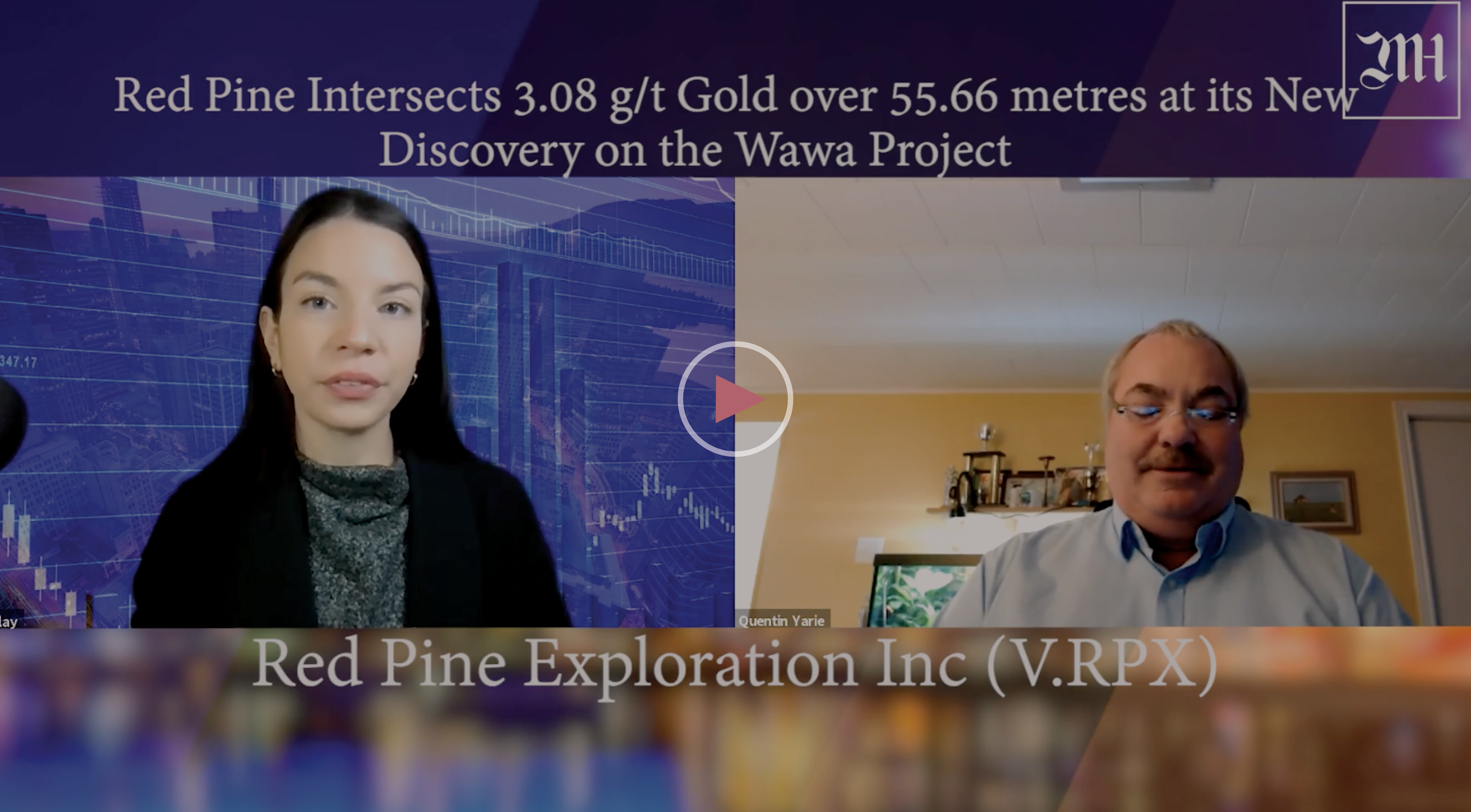 Red Pine Exploration (RPX) has reported a significant gold intersection from its 2021 drilling program in the Surluga South discovery area of its Wawa project in Ontario. The Surluga South discovery is now extending up to 500 metres down-dip from the boundary of the current mineral resource of the Surluga Deposit. Quentin Yarie, President and CEO of Red Pine Exploration sat down with Caroline Egan to highlight the news.