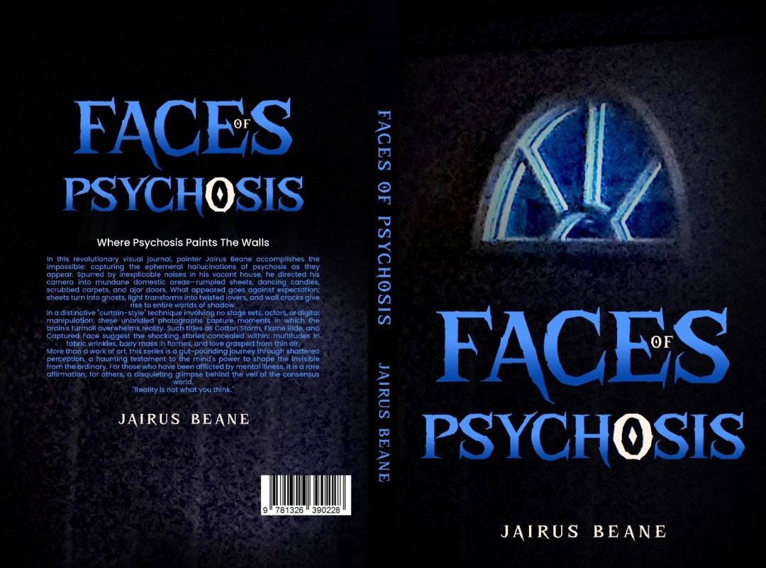 Shoreline, WA - Jairus Beane’s Faces of Psychosis has ignited critical acclaim as a genre-defying masterpiece that fuses memoir, avant-garde photography, and mental health advocacy. Released today, the groundbreaking work, featuring 92 unaltered hallucinatory images, such as the visceral "Horror Strip" (page 95) and the abstract "Cotton Picasso" (page 92), positions Beane alongside visionaries like Yayoi Kusama and Frida Kahlo in transforming psychological turmoil into transcendent art. Galleries from Seattle to Berlin prepare exhibitions as critics hail the book’s "radical honesty" (ArtForum) and "technical alchemy" (The New York Times).