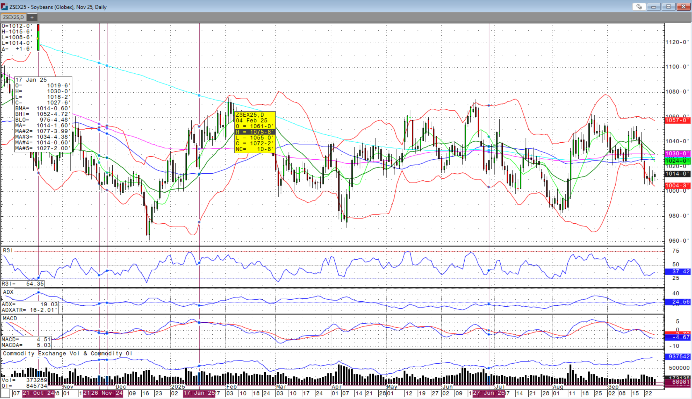 The brief opportunity to buy Argentine soybeans cheaper than Brazil was a gift and China took advantage at the expense of US farmers. Ultimately, there will likely be a deal between the US and China that will result in purchase announcements of US soybeans by China. Time is of the essence as US farmers begin soybean harvest with extremely negative basis levels especially in areas of the country that typically export to China. Presidents’ Trump and Xi are said to meet next month at the APEC Summit.