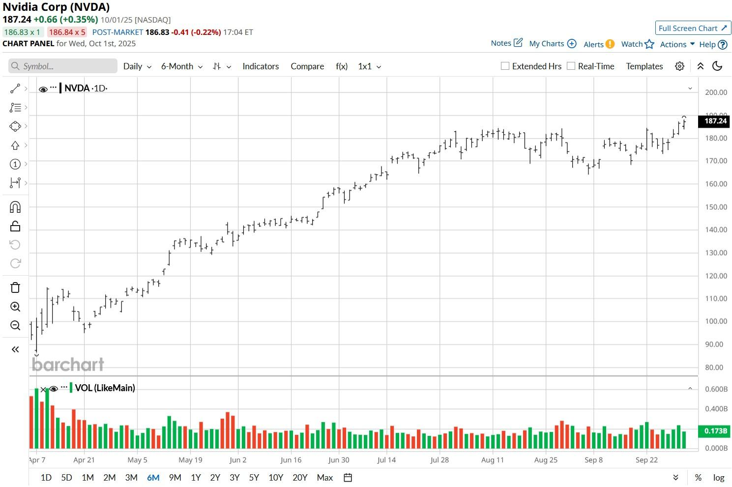 Nvidia (NVDA) printed an all-time high of $191.05 on Thursday as investors continued to cheer its $100 billion partnership with OpenAI, cementing its leadership in artificial intelligence (AI) hardware.